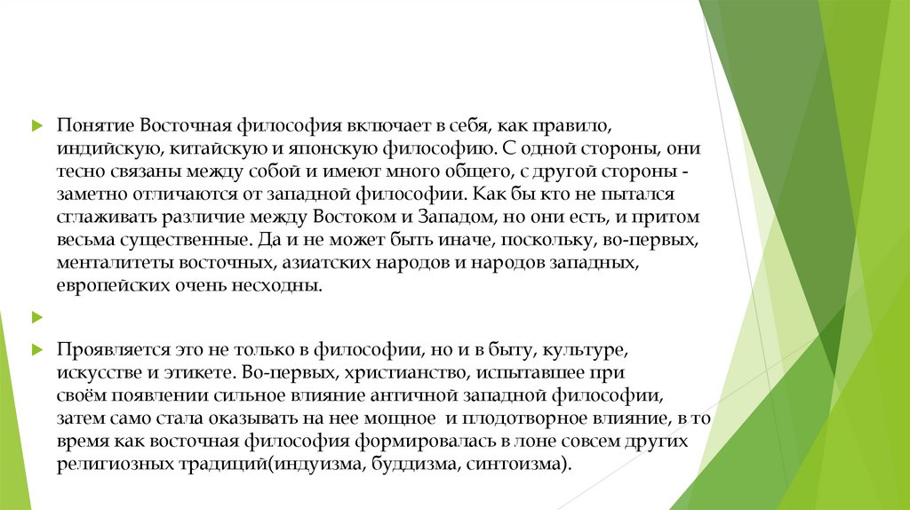 время как восточная философия формировалась в лоне совсем других