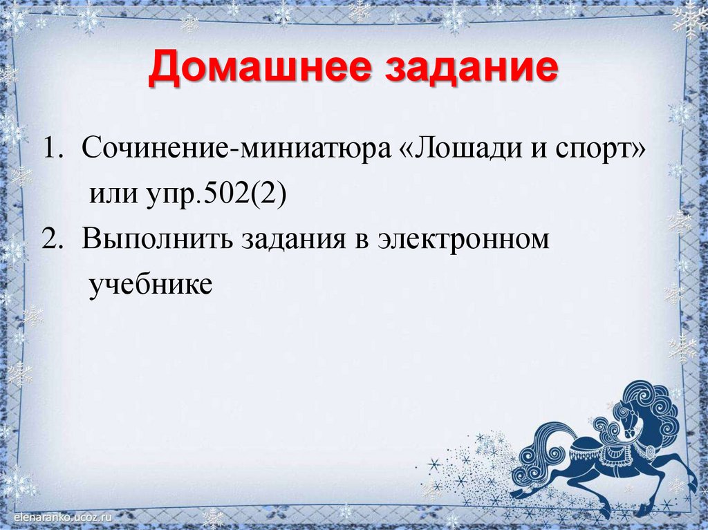Домашнее задание1. Сочинение-миниатюра «Лошади и спорт»