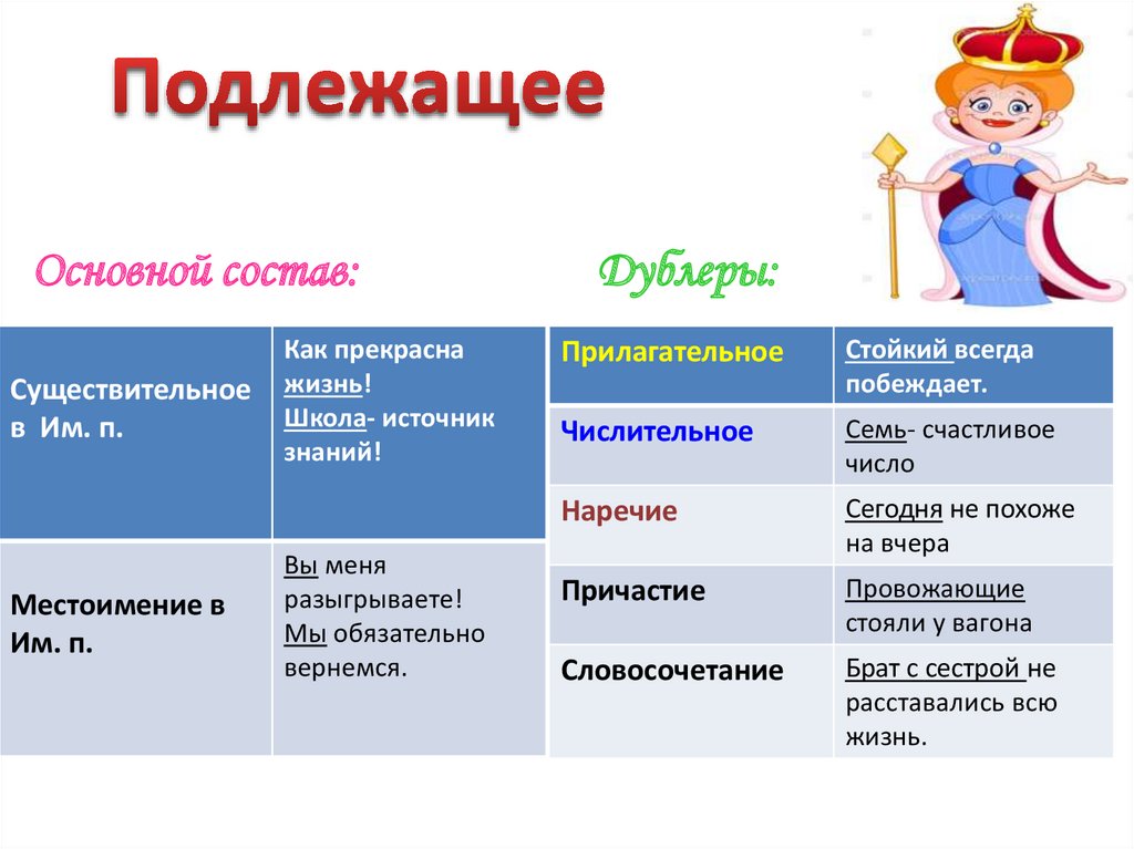 Главные роли.Подлежащее