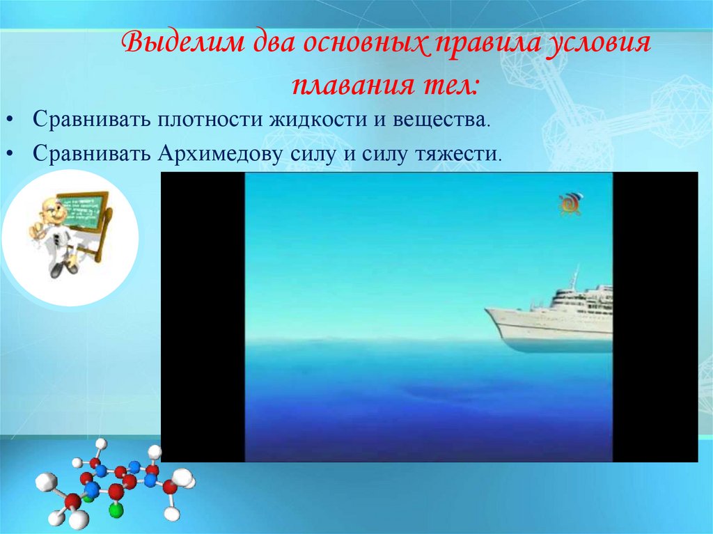 Выделим два основных правила условияплавания тел: