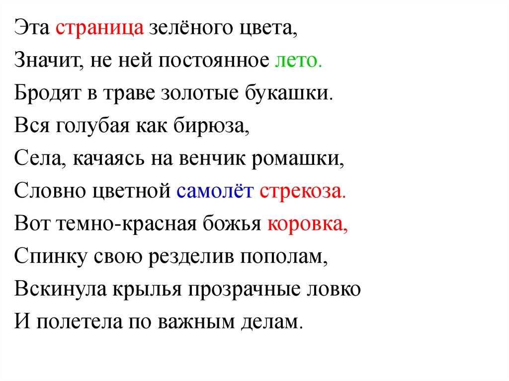 Эта страница зелёного цвета,Значит, не ней постоянное лето.
