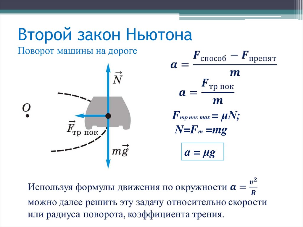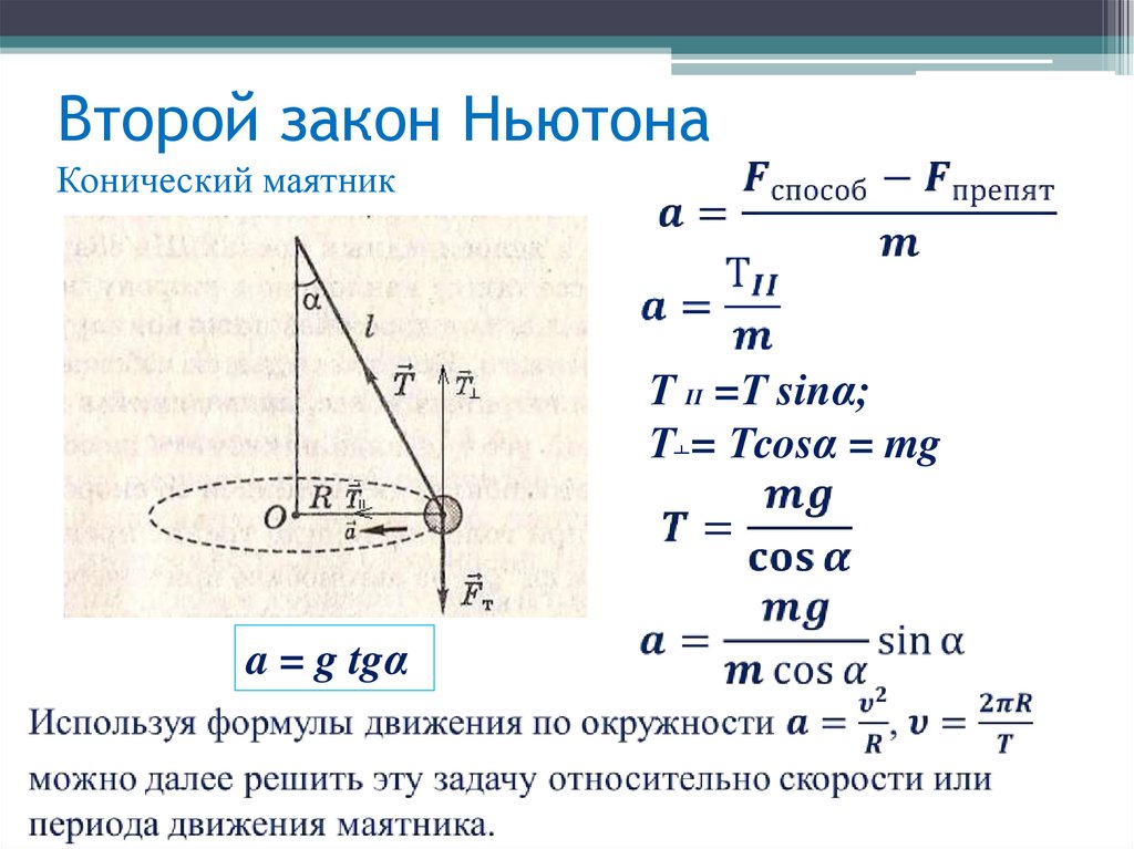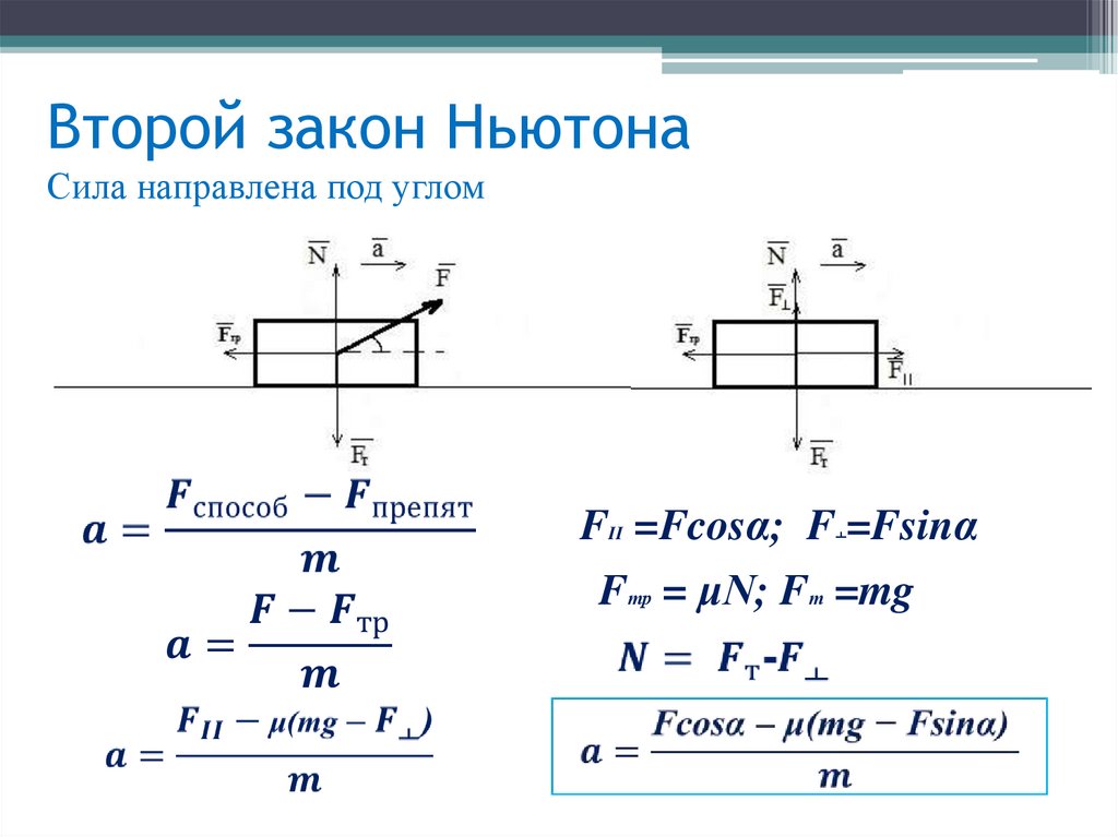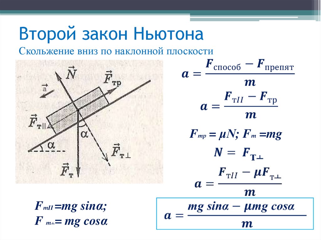 Второй закон НьютонаСкольжение вниз по наклонной плоскости
