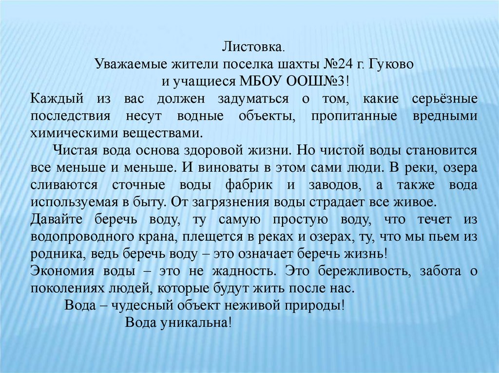 Листовка.Уважаемые жители поселка шахты №24 г. Гуково