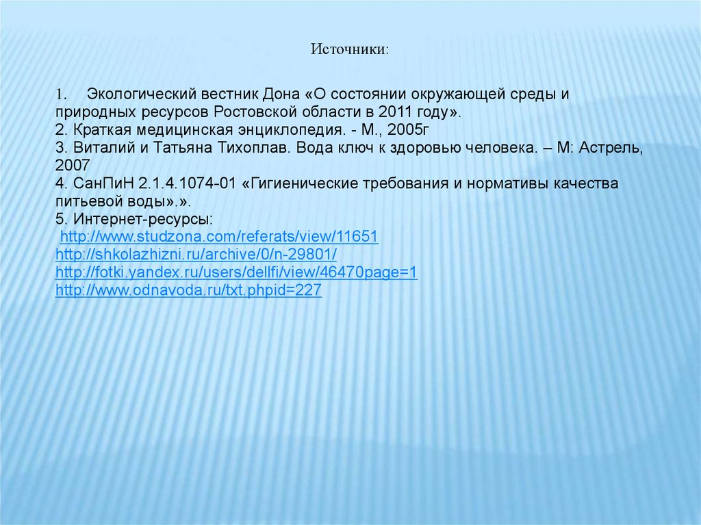 Источники:1. Экологический вестник Дона «О состоянии окружающей среды и