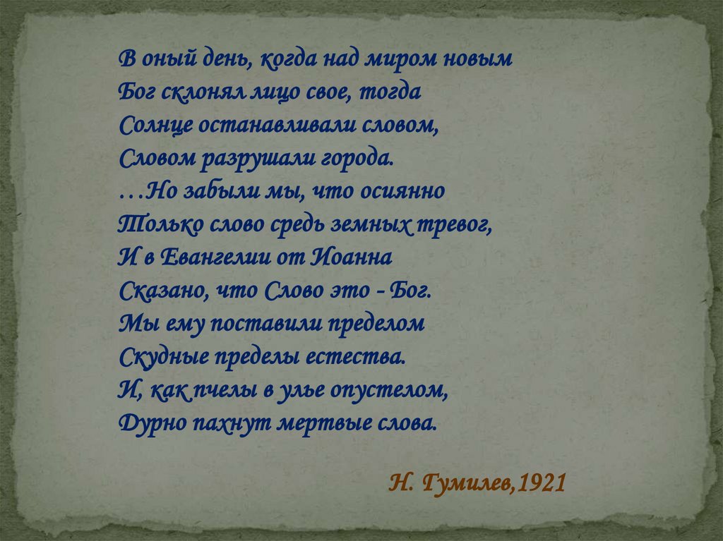 В оный день, когда над миром новымБог склонял лицо свое, тогда
