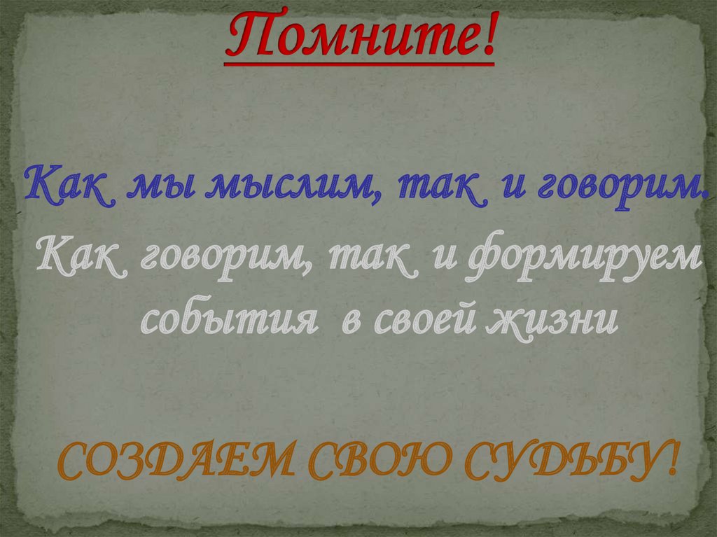 Как мы мыслим, так и говорим.Как говорим, так и формируем