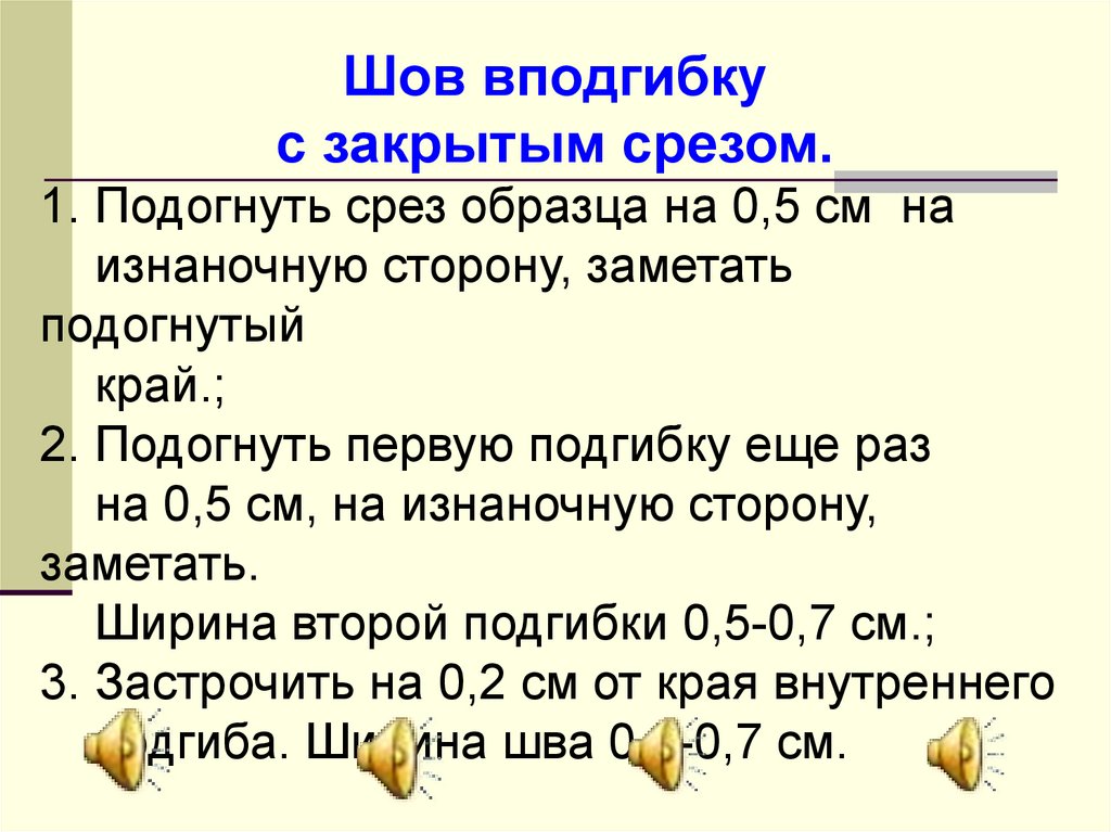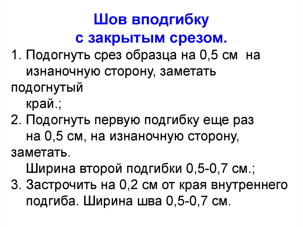 подгиба. Ширина шва 0,5-0,7 см.