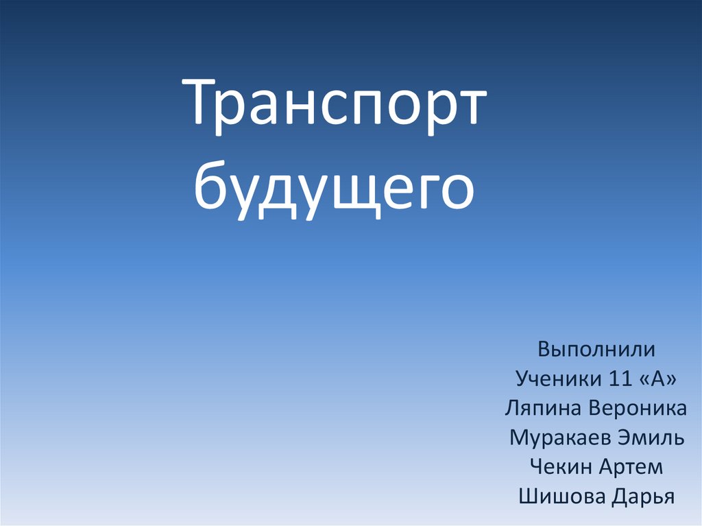 Проект «Транспорт будущего – дорога и средство передвижения»