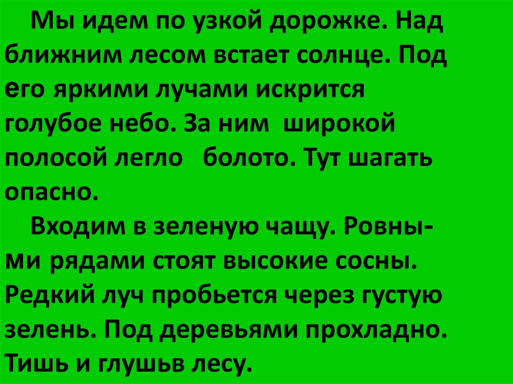 Мы идем по узкой дорожке. Надближним лесом встает солнце. Под