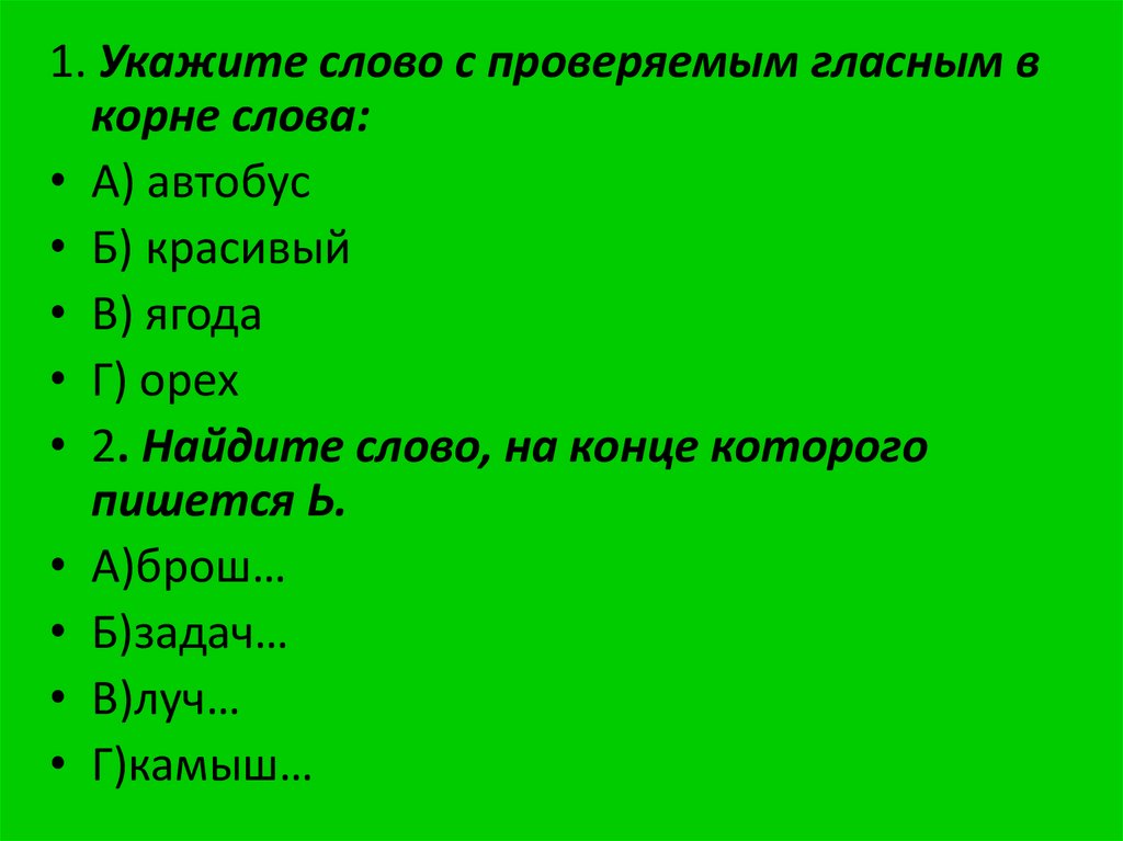 1. Укажите слово с проверяемым гласным вкорне слова: