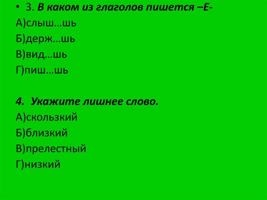 • 3. В каком из глаголов пишется –ЕА)слыш…шьБ)держ…шь