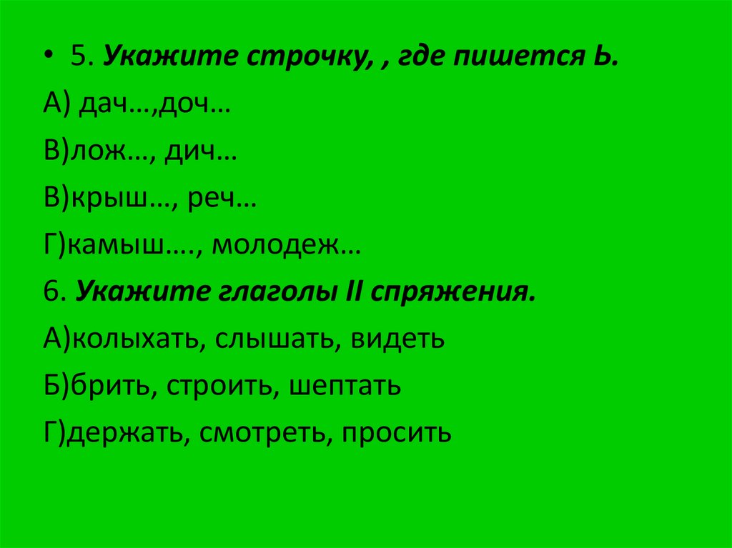 • 5. Укажите строчку, , где пишется Ь.А) дач…,доч…