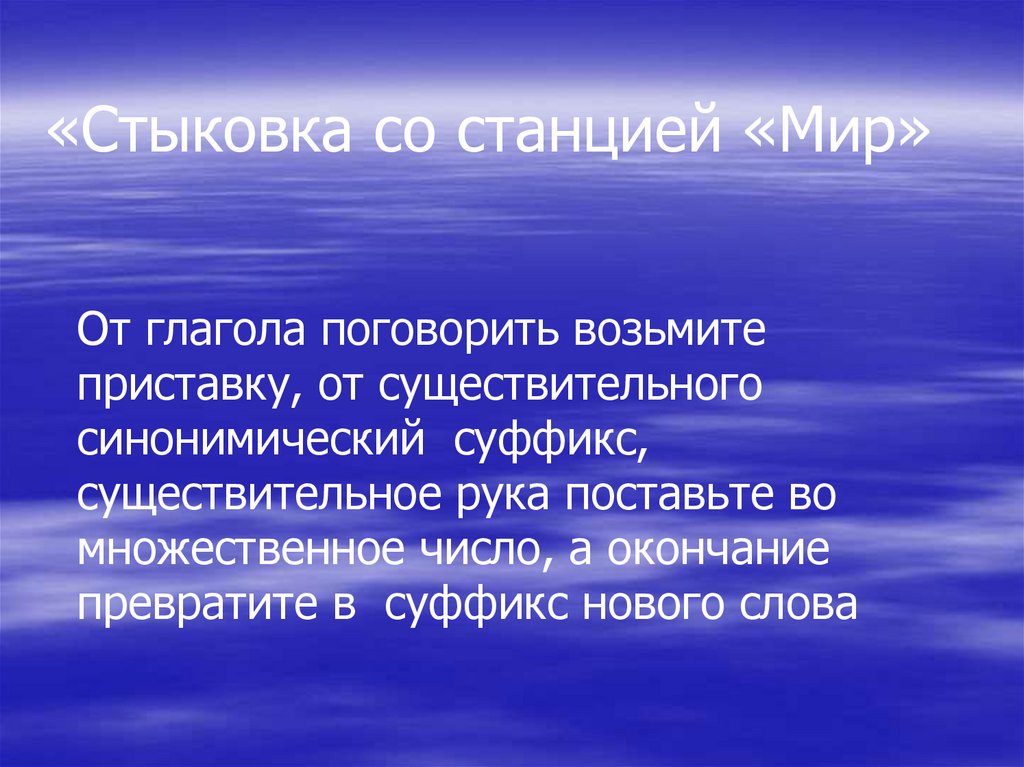 «Стыковка со станцией «Мир»От глагола поговорить возьмите