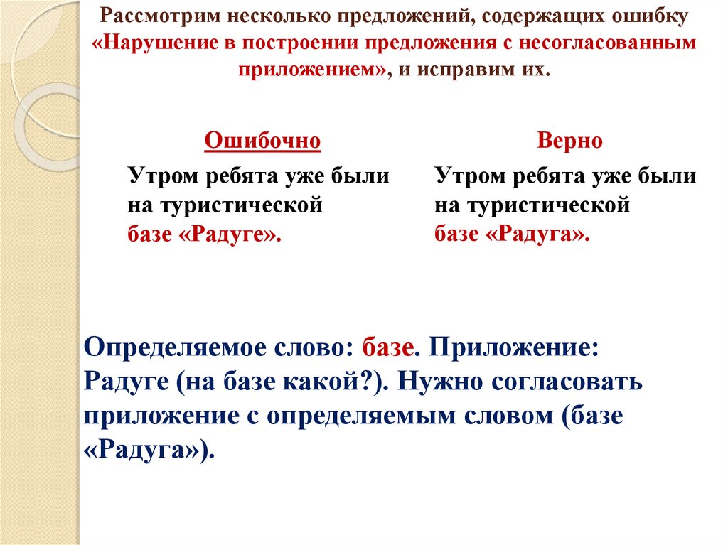 Нарушение в построении предложения снесогласованным приложением – ошибка,