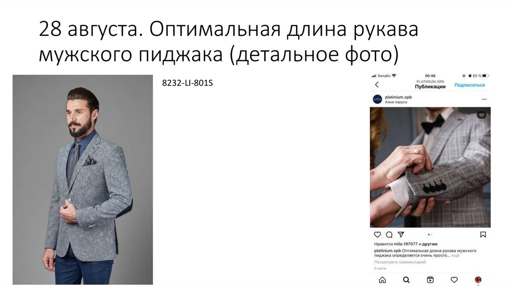 28 августа. Оптимальная длина рукавамужского пиджака (детальное фото)
