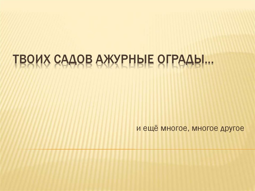ТВОИХ САДОВ АЖУРНЫЕ ОГРАДЫ…