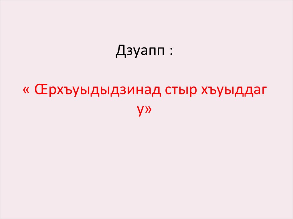 Дзуапп :« Œрхъуыдыдзинад стыр хъуыддаг