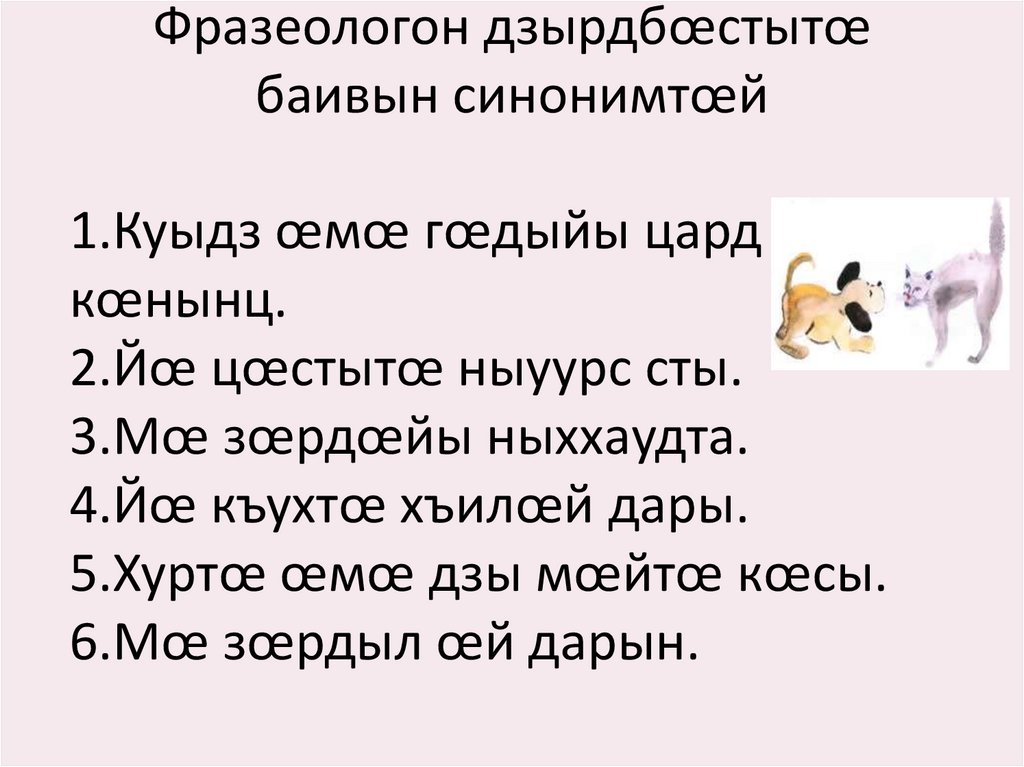 Фразеологон дзырдбœстытœбаивын синонимтœй