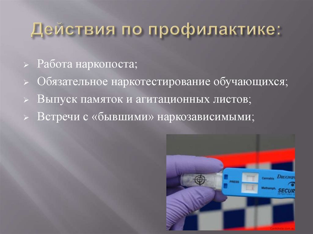 Работа наркопоста;Обязательное наркотестирование обучающихся;