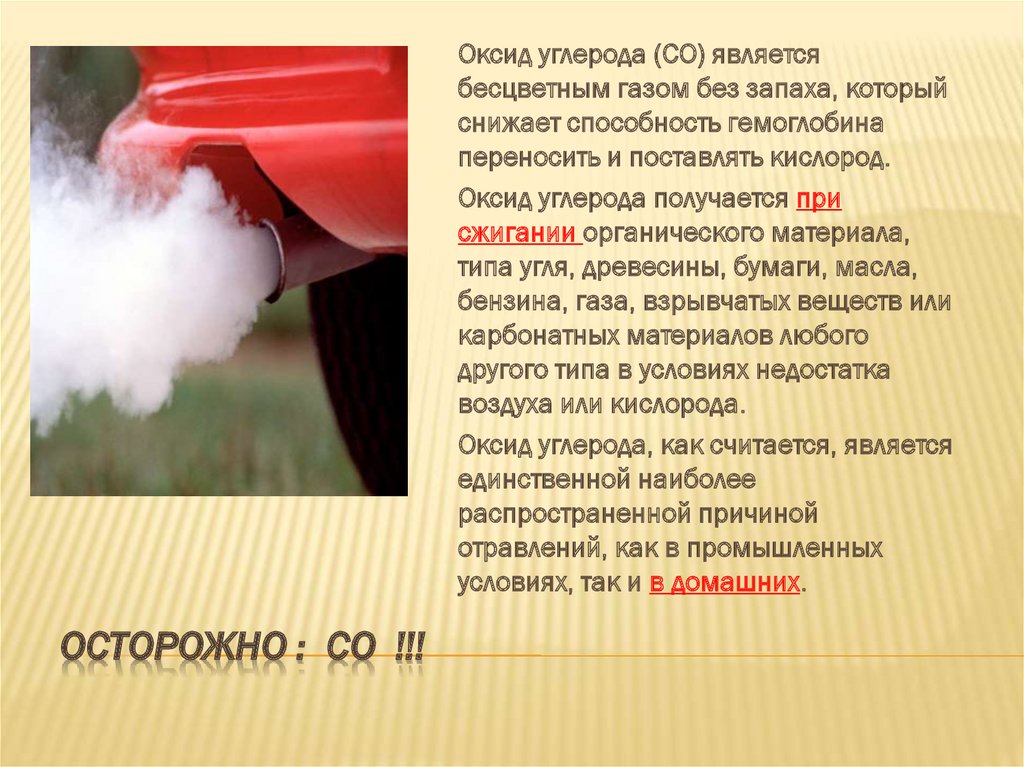 Оксид углерода (СО) являетсябесцветным газом без запаха, который