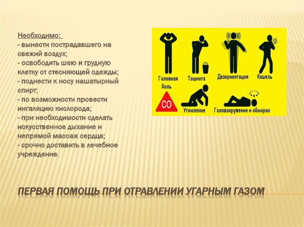 ПЕРВАЯ ПОМОЩЬ ПРИ ОТРАВЛЕНИИ УГАРНЫМ ГАЗОМ