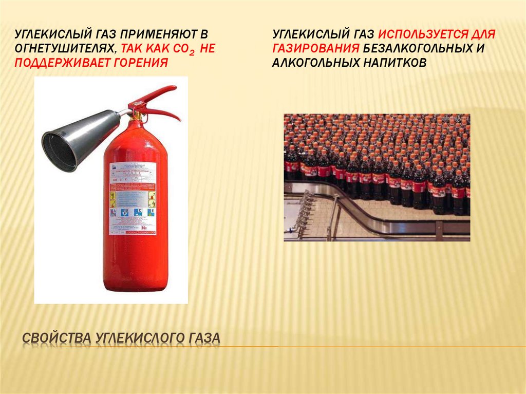 УГЛЕКИСЛЫЙ ГАЗ ПРИМЕНЯЮТ ВОГНЕТУШИТЕЛЯХ, ТАК КАК СО2 НЕ