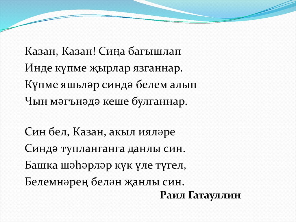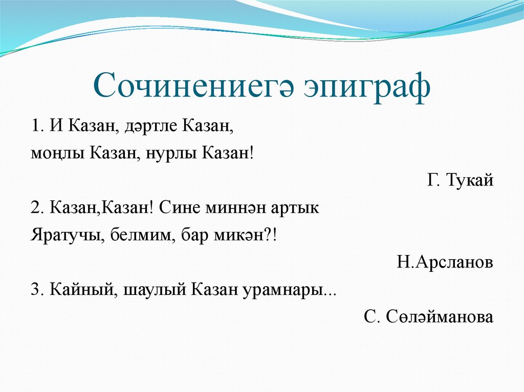 Сочинениегә эпиграф1. И Казан, дәртле Казан,