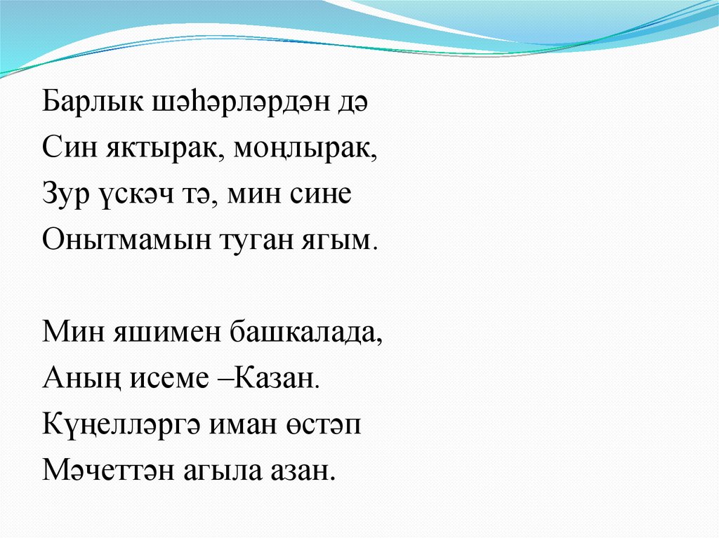 Барлык шәһәрләрдән дәСин яктырак, моңлырак,