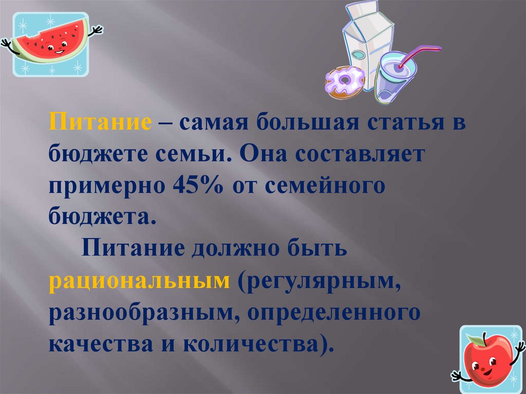Питание – самая большая статья вбюджете семьи. Она составляет