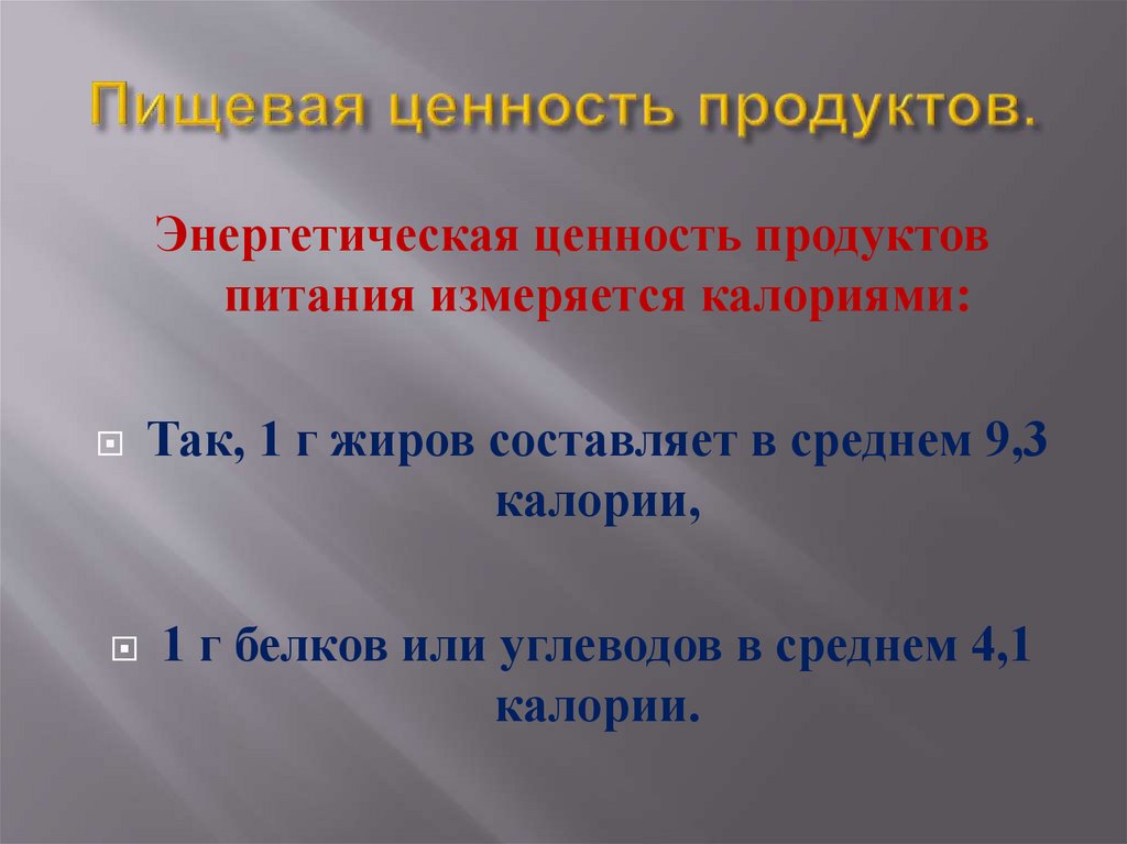 Так, 1 г жиров составляет в среднем 9,3