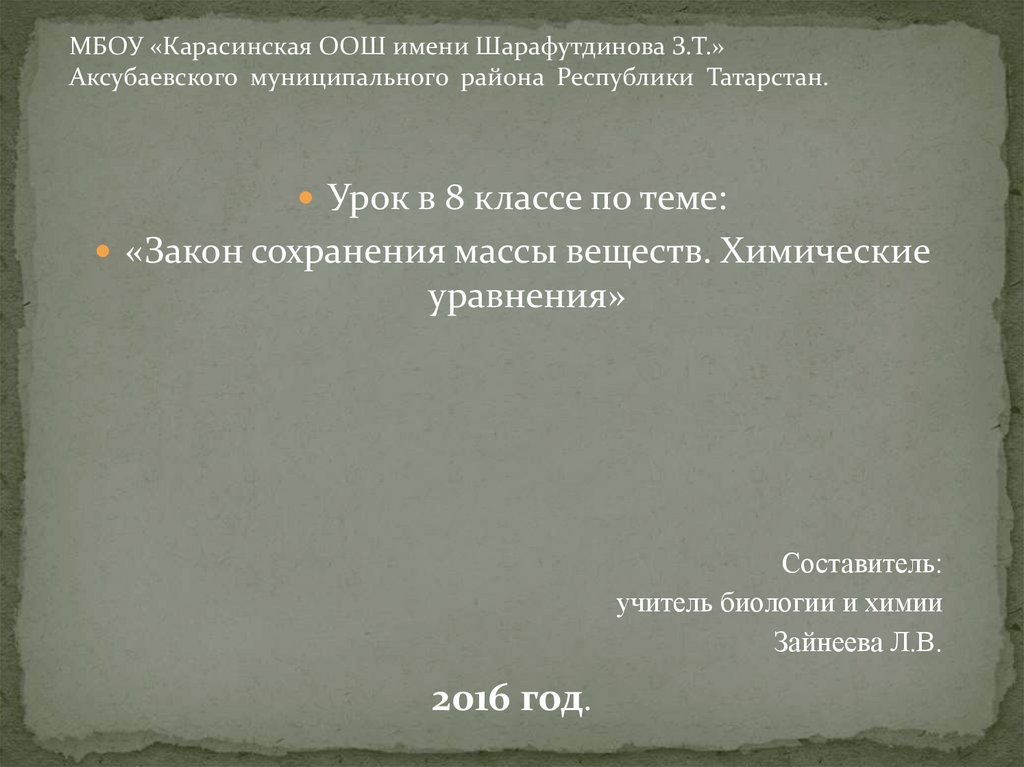 МБОУ «Карасинская ООШ имени Шарафутдинова З.Т.»Аксубаевского муниципального района Республики Татарстан.