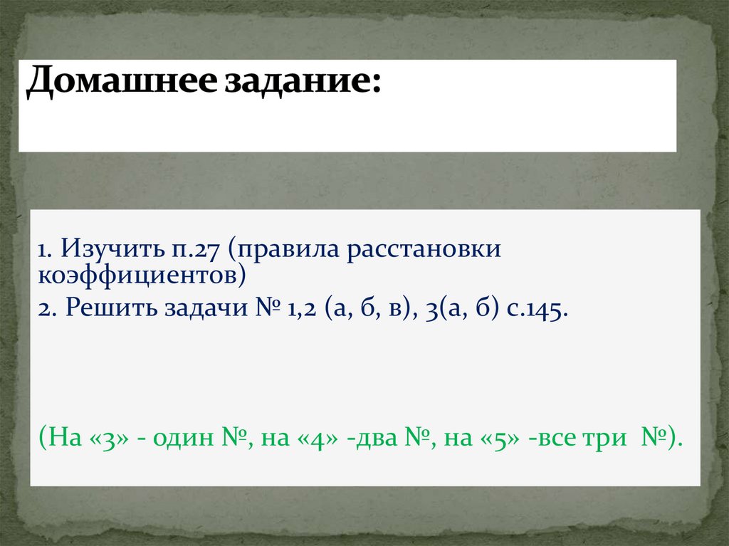 1. Изучить п.27 (правила расстановкикоэффициентов)
