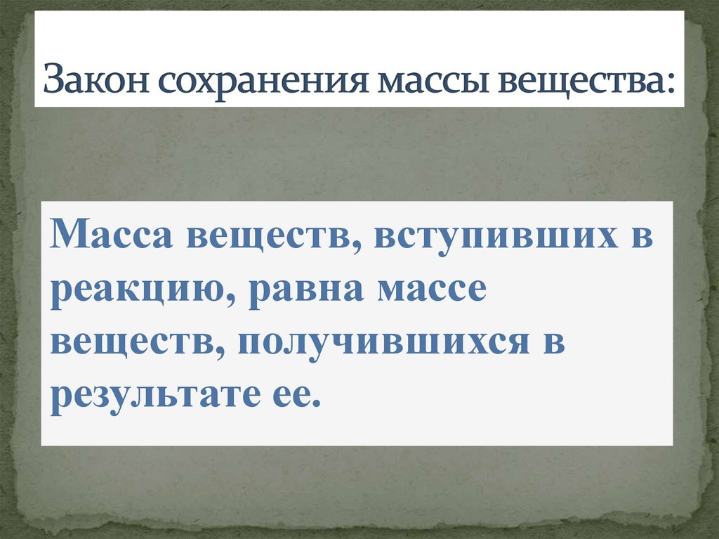 Закон сохранения массы веществ. Химические уравнения(8 класс)