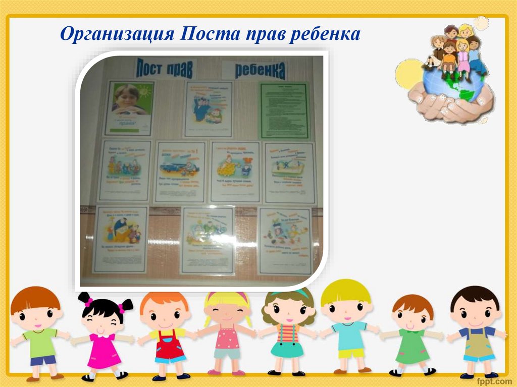 •Организация, оборудование и оформление стенда «Пост прав ребенка»