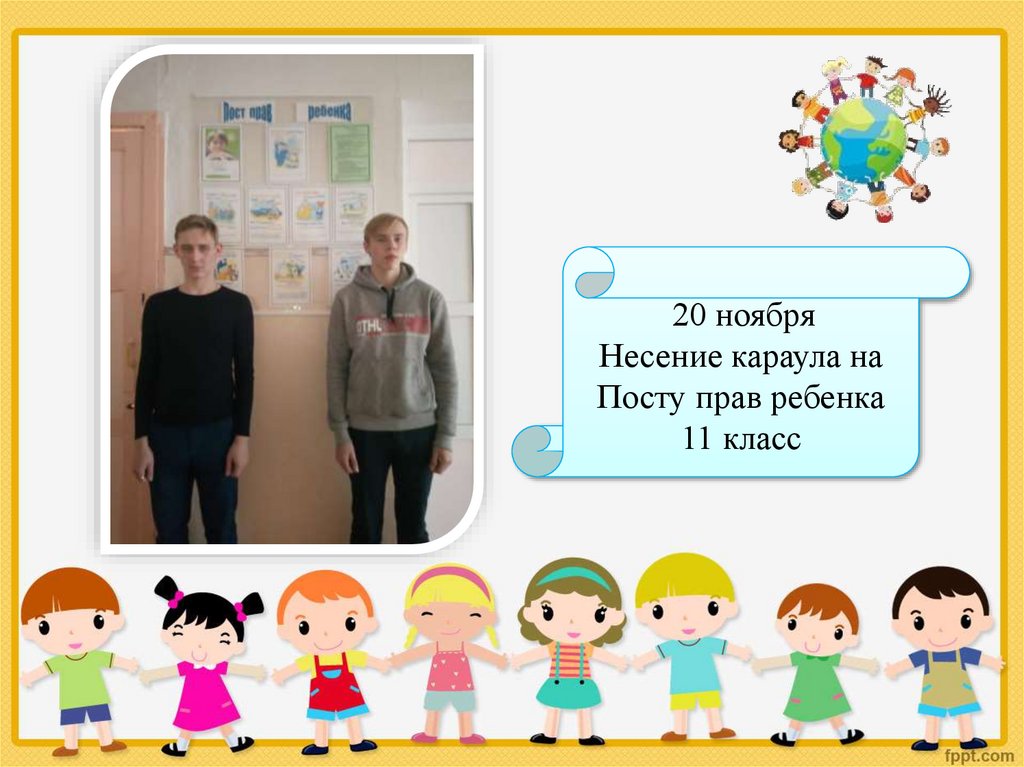 •Несение 20 ноября караула на Посту прав ребенка 11 класс.