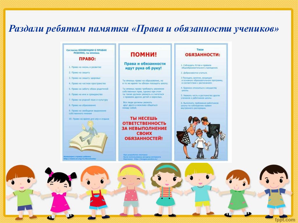 Раздали ребятам памятки «Права и обязанности учеников»9.
