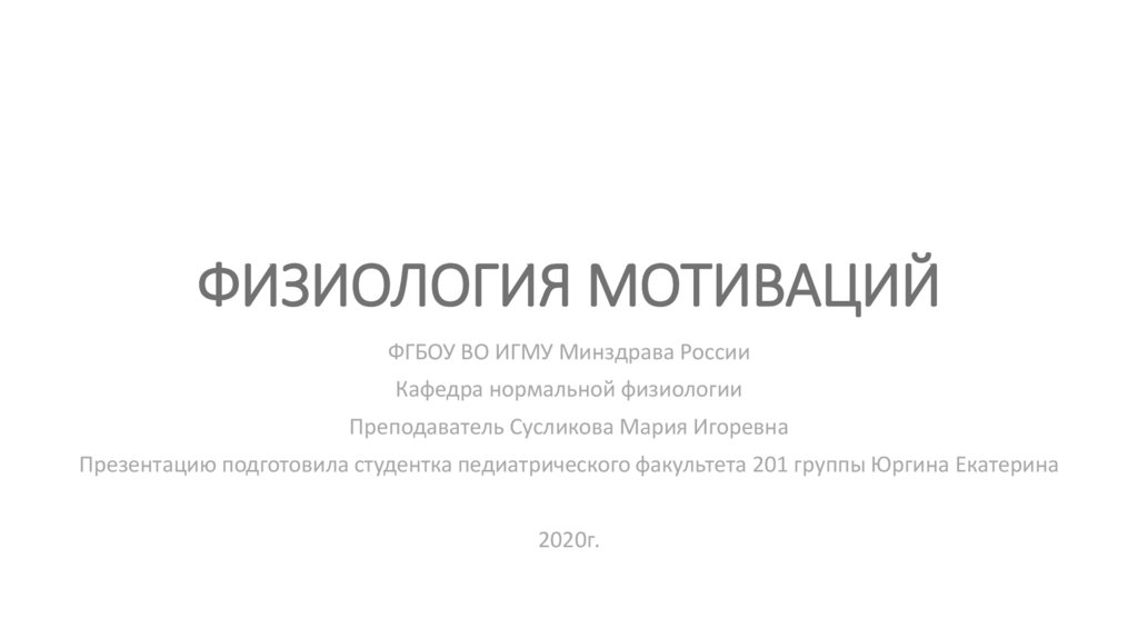 ФИЗИОЛОГИЯ МОТИВАЦИЙФГБОУ ВО ИГМУ Минздрава России