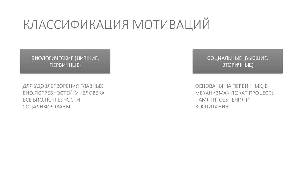 КЛАССИФИКАЦИЯ МОТИВАЦИЙБИОЛОГИЧЕСКИЕ (НИЗШИЕ,