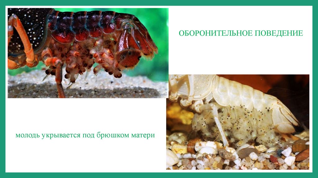 ОБОРОНИТЕЛЬНОЕ ПОВЕДЕНИЕмолодь укрывается под брюшком матери