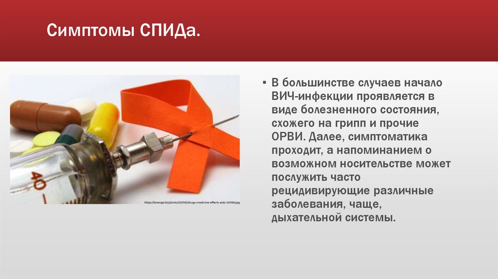 Симптомы СПИДа.▪ В большинстве случаев начало