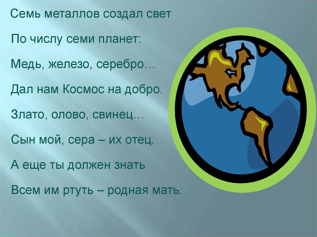 Семь металлов создал светПо числу семи планет: