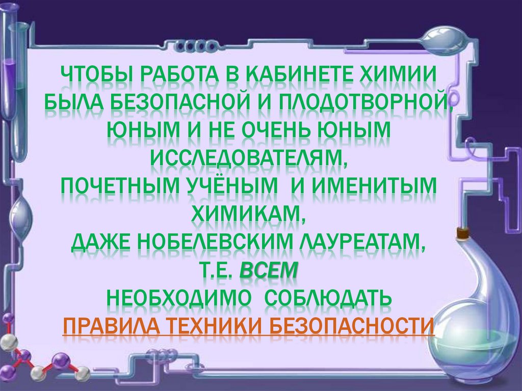 ЧТОБЫ РАБОТА В КАБИНЕТЕ ХИМИИБЫЛА БЕЗОПАСНОЙ И ПЛОДОТВОРНОЙ,