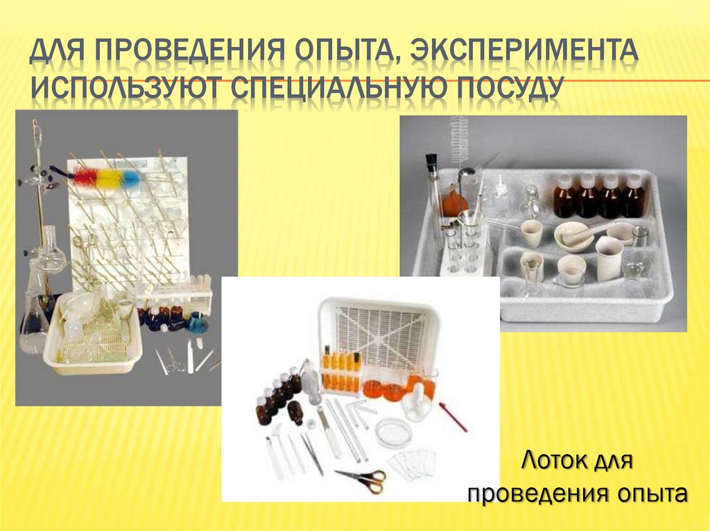 ДЛЯ ПРОВЕДЕНИЯ ОПЫТА, ЭКСПЕРИМЕНТАИСПОЛЬЗУЮТ СПЕЦИАЛЬНУЮ ПОСУДУ
