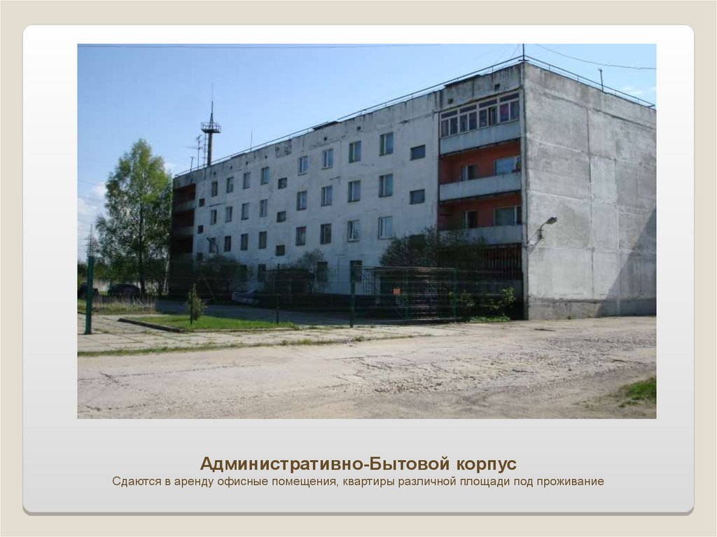 Административно-Бытовой корпусСдаются в аренду офисные помещения, квартиры различной площади под проживание