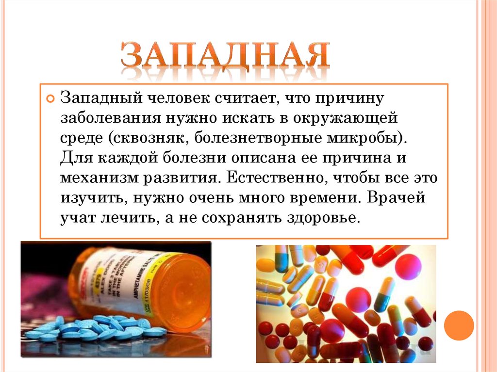 Западный человек считает, что причинузаболевания нужно искать в окружающей