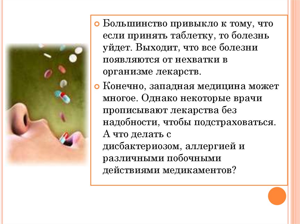 Большинство привыкло к тому, чтоесли принять таблетку, то болезнь