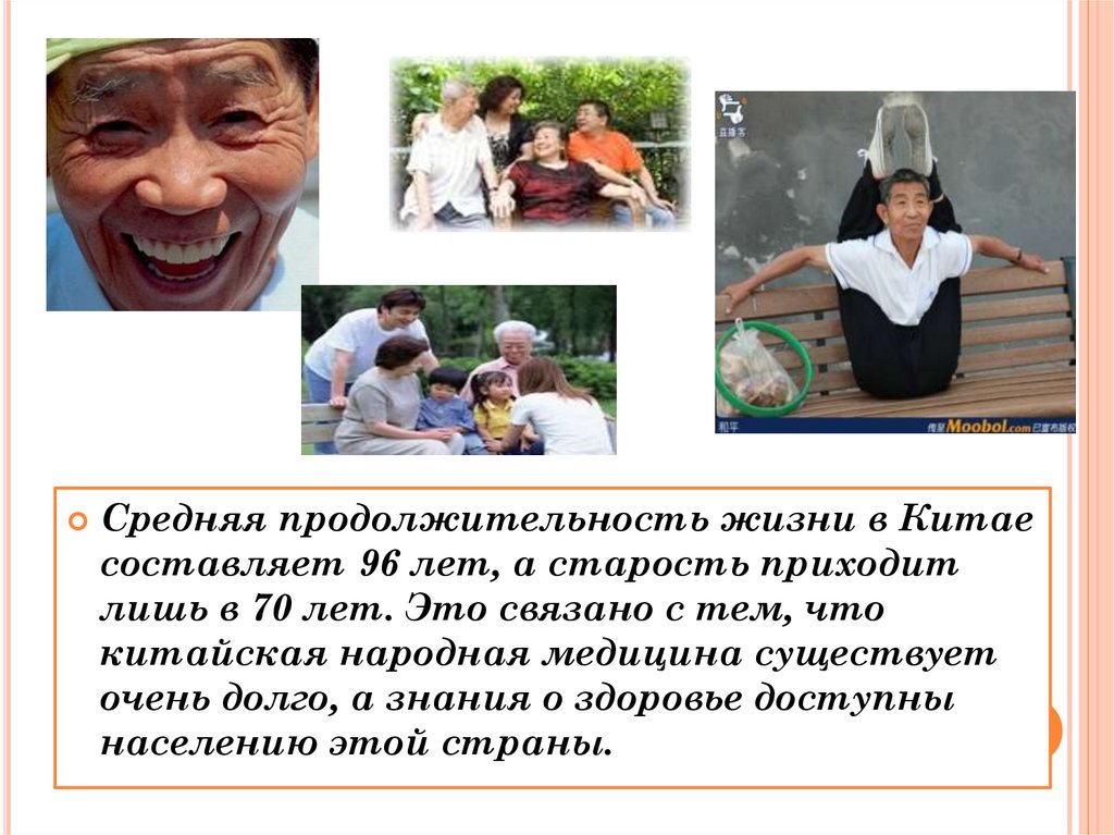 Средняя продолжительность жизни в Китаесоставляет 96 лет, а старость приходит
