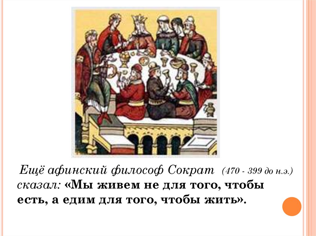 Ещё афинский философ Сократ (470 - 399 до н.э.)сказал: «Мы живем не для того, чтобы