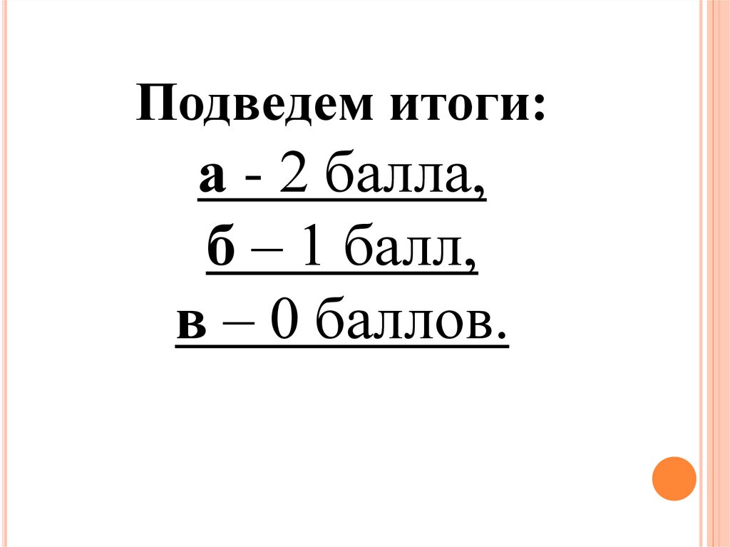 Подведем итоги:а - 2 балла,