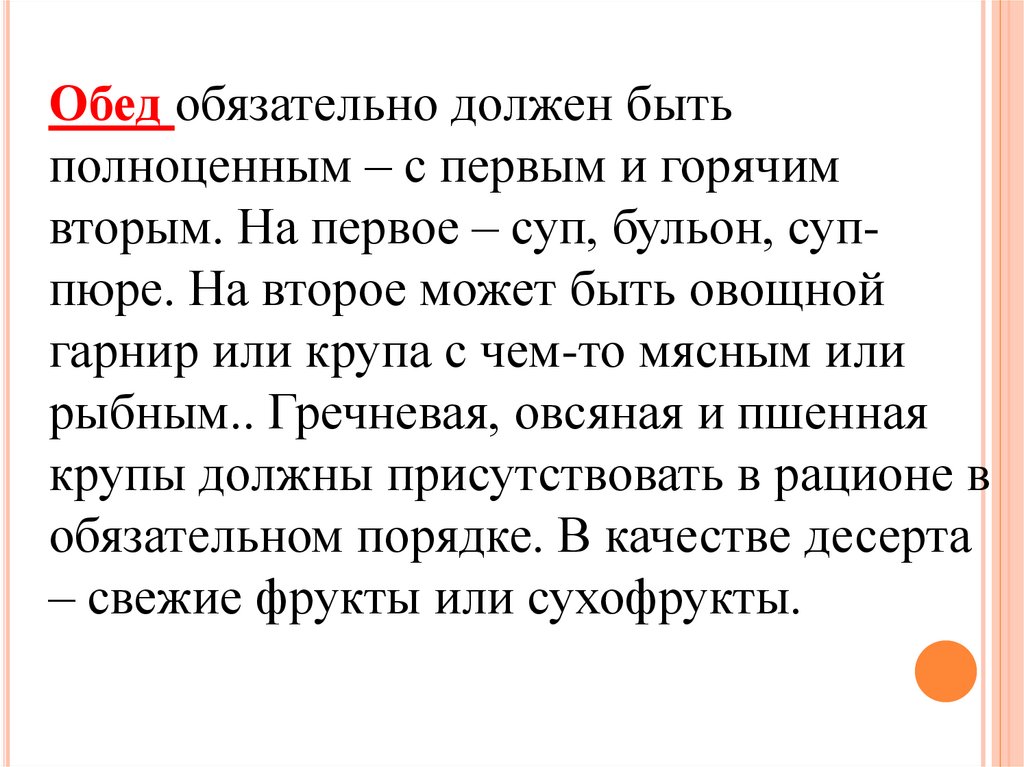 Обед обязательно должен бытьполноценным – с первым и горячим
